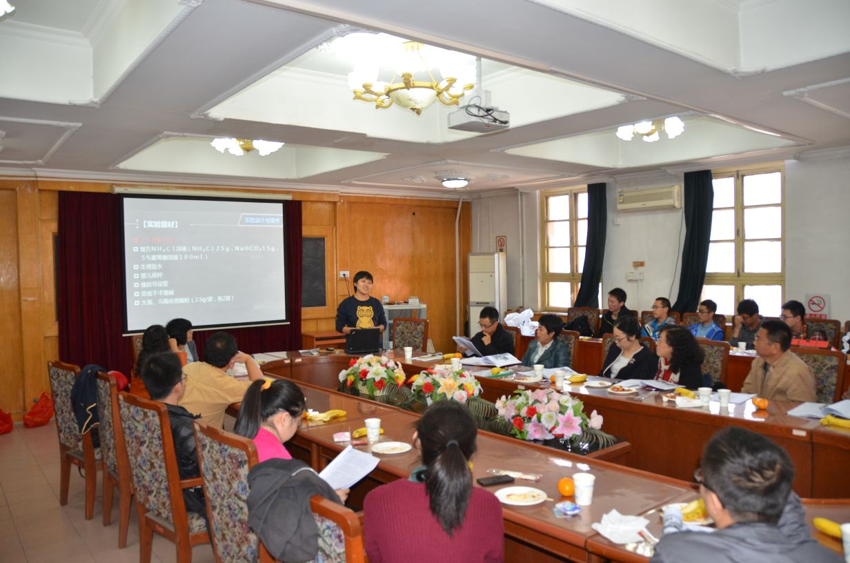 郭健老师首先汇报了此项目中生理学实验教学模式改革的背景、目的意义、组织过程和主要内容。随后本次实验教学改革的参与主体2012岐黄国医1班的同学们汇报了他们进行自主创新实验的设计思路、实验过程和结果,其实验方案包括方剂不同剂型、不同配比的疗效比较,中医理论的实验验证以及针刺的效用等多个方面。同学们还谈了参与这次生理实验教学模式改革的心得以及在进行自主创新实验过程中的反思与感悟。翟双庆教授作为项目负责人,对生理实验教学模式改革的顺利实施表示祝贺。他指出,员工们积极参与,认真下了功夫。自主实验设计方案丰富,涵盖面广泛,涉及了中医药学的多个方面,反映了员工们中医基本功扎实,也充分说明这次实验教学模式改革很好地调动了员工的自主性和能动性,对员工是一种多层面的磨练,有助于中医拔尖人才的培养。
