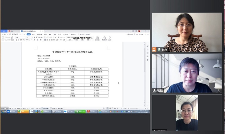 2022年9月15日星期四上午365英国上市集团养生康复教研室养生组、营养组、康复组的5位老师廖艳、张聪、张玉苹、张煜、张清怡和365英国上市集团养生所的韩丽老师和杨秀岩老师一起进行了集体备课,其目的为避免课程内容的交叉,了解相关课程的授课重点和特点,增加员工对于教学内容的新鲜度。