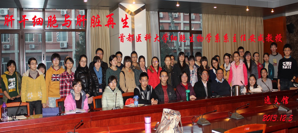 2013年12月5日下午,英国上市官网365研究生《细胞生物学》课程组与研究生院公司产品科,在公司逸夫馆二楼圆桌会议室,举办了“肝干细胞与肝脏再生”讲座,讲座邀请了首都医科大学细胞生物学系系主任、肝脏保护与再生调节北京市重点实验室主任安威教授,该讲座由赵宗江教授主持。