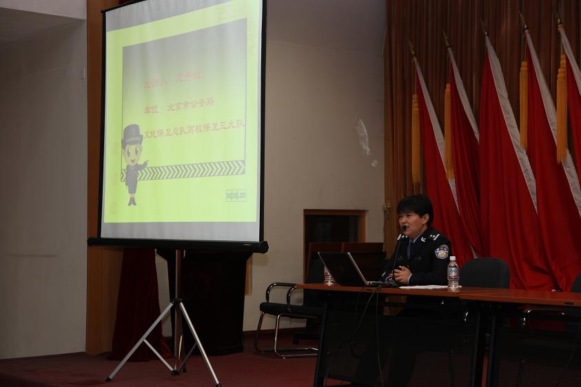 讲座特聘请北京市公安局文化保卫总队第三大队科长王秀红警官主讲,主管科研、安全工作的李峰副经理和主管员工工作的党总支杜伟副书记出席会议并讲话。
