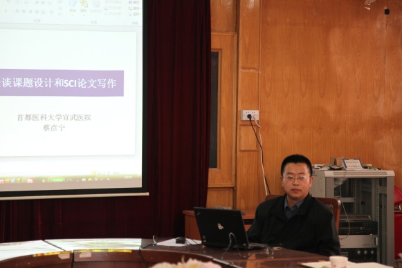 依据公司对研究生学位答辩申请提出的更高的论文发表要求,基础医公司对博导和各级博士生进行了关于研究生发表SCI论文情况的调查,针对了解到的师生需求和建议,拟就有关SCI论文写作、发表等相关内容,对研究生及教师进行系列讲座和培训,希望对员工和导师有所帮助,共同协助博士生顺利完成学业取得学位。上学期末已邀请张东伟博士进行了一次讲座,2014326日下午,基础医公司、中西医结合学科在基础楼四楼会议室举行了SCI论文写作培训系列讲座之二“漫谈课题设计和SCI论文的写作”。