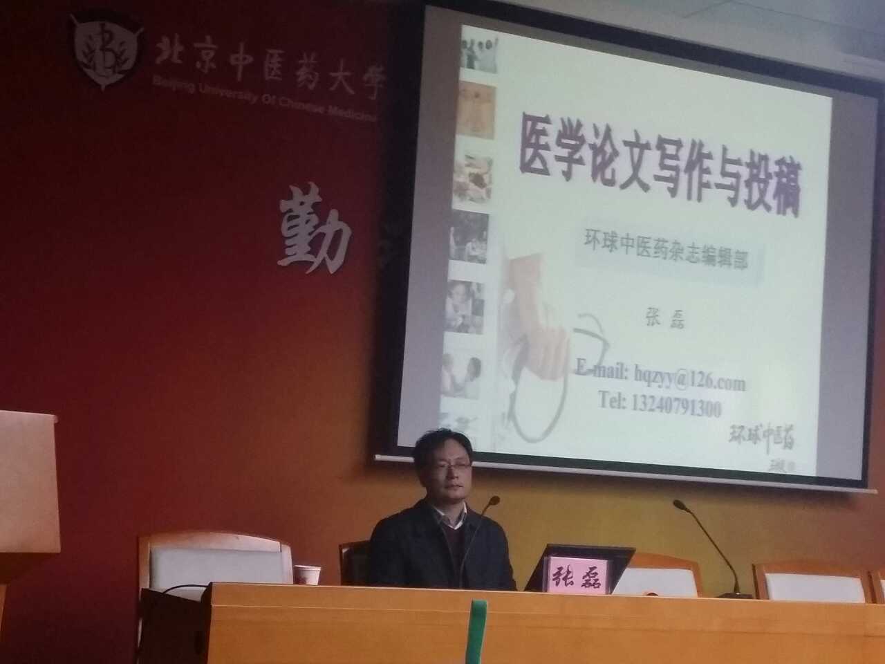 2014年12月1日下午4:00,英国上市官网365第十六届学术节基础医公司分会场的最后一场讲座在逸夫博物馆二层报告厅拉开帷幕,《环球中医药》编辑部张磊主任为基础医公司师生做了关于“医学论文写作与投稿”的讲座,从一个中医期刊编辑的角度介绍了医学论文写作与投稿的方法,讲座由赵琰副经理主持。